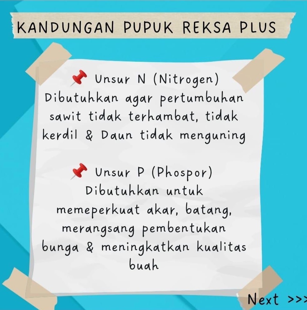 Reksa Plus adalah solusi pupuk sawit terpercaya yang dirancang khusus untuk meningkatkan pertumbuhan, daya tahan, dan produktivitas tanaman kelapa sawit. Dengan formulasi seimbang dan bahan berkualitas tinggi, Reksa Plus membantu petani dan perusahaan perkebunan mencapai hasil panen yang lebih optimal, efisien, dan berkelanjutan.